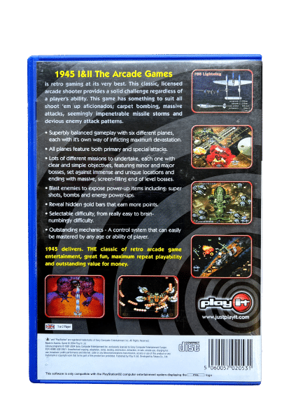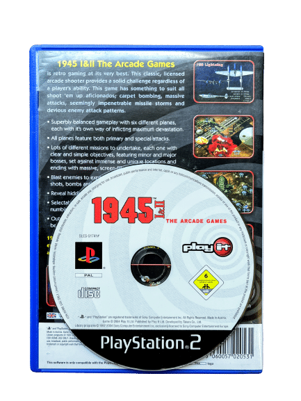Good Condition & 100% complete with contents: 1945 I & II: The Arcade Game (WWII Games Compilation) for SONY PlayStation 2 / PS2. This preowned games compilation is in good condition and comes complete with case, cover, manual / booklet, and game disc. Stickers on game case. Small superficial scratches on disc that does not effect gameplay.