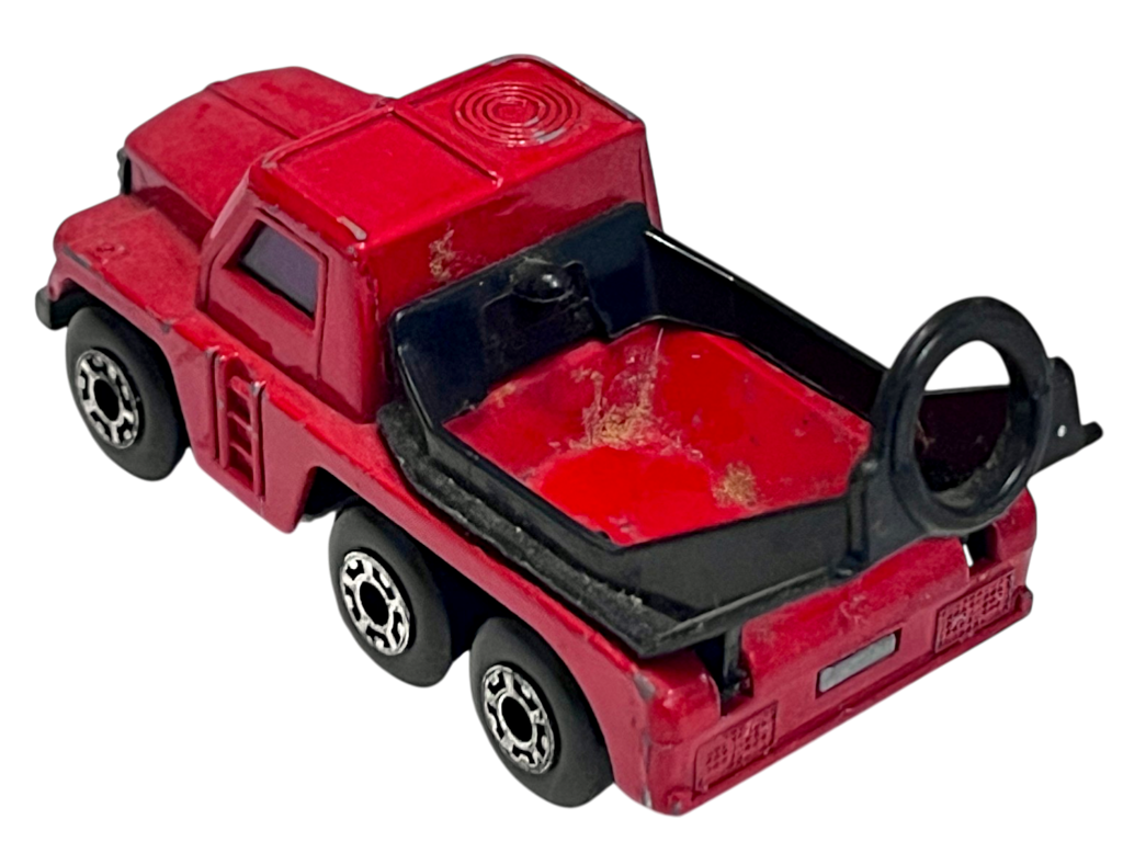 DESCRIPTION: This vintage red tow truck features a rear lifting platform designed to transport disabled or damaged vehicles. Tow trucks have long been a staple of toy city vehicle collections, appearing alongside fire trucks, ambulances and police cars. The rugged die-cast body and multi-axle wheel layout give the toy a strong and functional appearance. Vehicles like this encouraged imaginative play where children could simulate roadside assistance and vehicle recovery scenarios. Over time these service vehicles have become popular collectible pieces within die-cast toy vehicle collections. Whether displayed in a miniature city scene or included in a classic toy vehicle collection, this tow truck represents the practical utility vehicles commonly found in real-world transport fleets.
