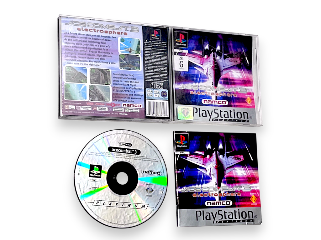 Ace Combat 3: Electrosphere (PS1) . This pre-owned game is in very good condition with extremely mild disc surface imperfections only and includes the pictured case and contents. Refer to the photographs.