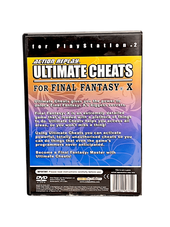 Action Replay Ultimate Cheats for Final Fantasy X (PS2) . This preowned SONY PlayStation 2 Game is in good condition and comes complete with pictured case + cover + game disc.