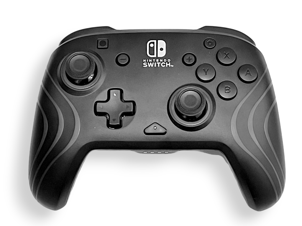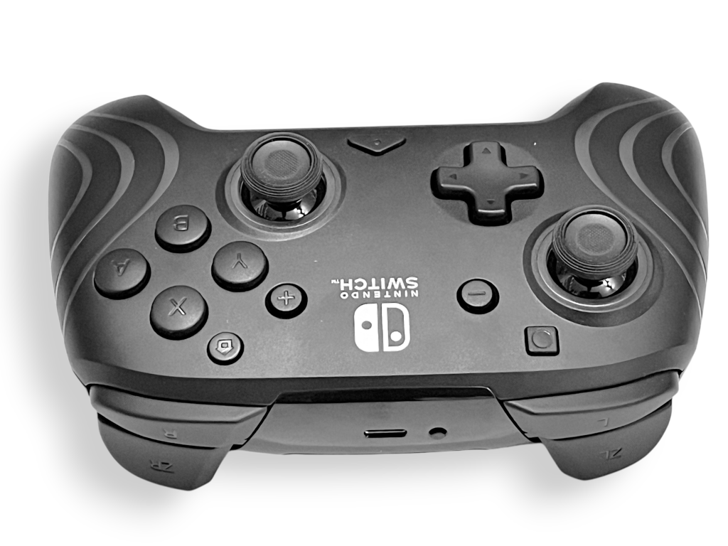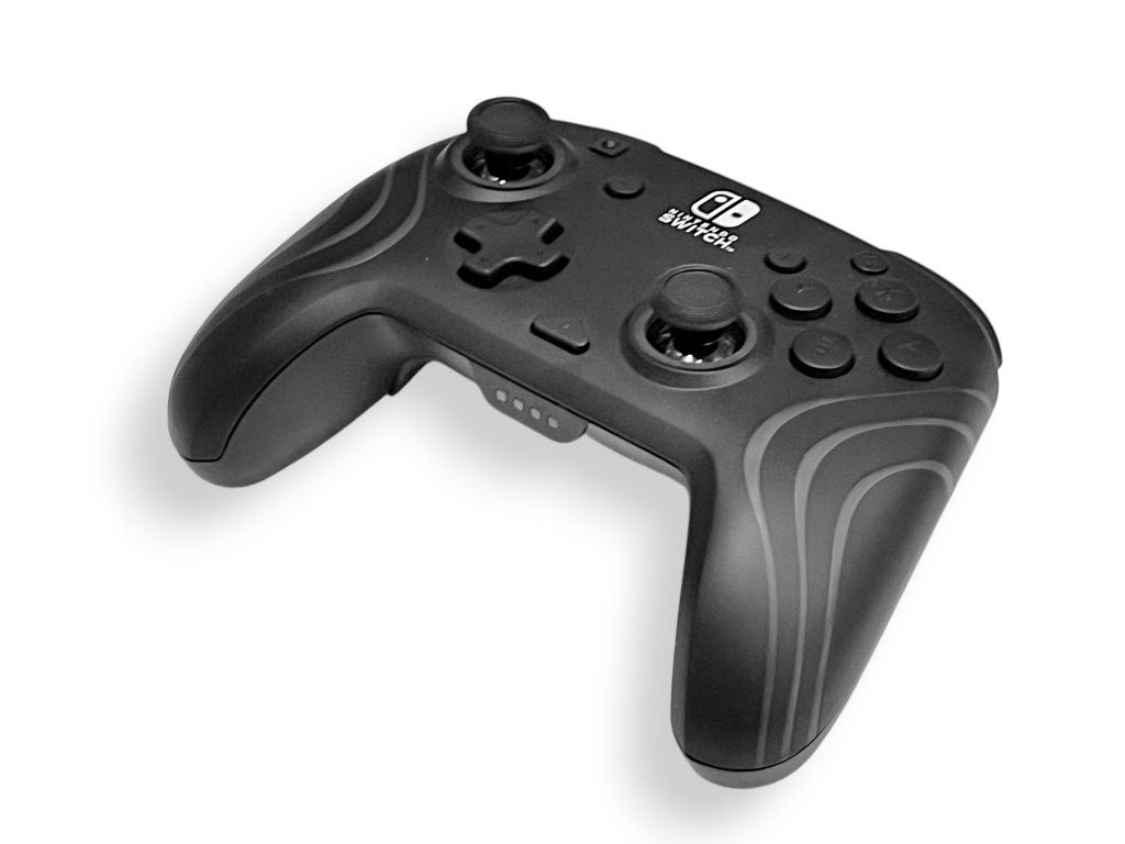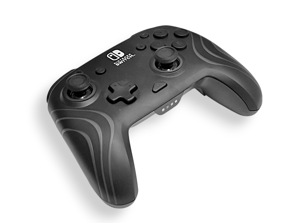 DESCRIPTION: A premium wireless controller for the Nintendo Switch featuring ergonomic grips, HD rumble, motion controls, and long battery life. Ideal for extended play sessions and preferred by players seeking precision and comfort.