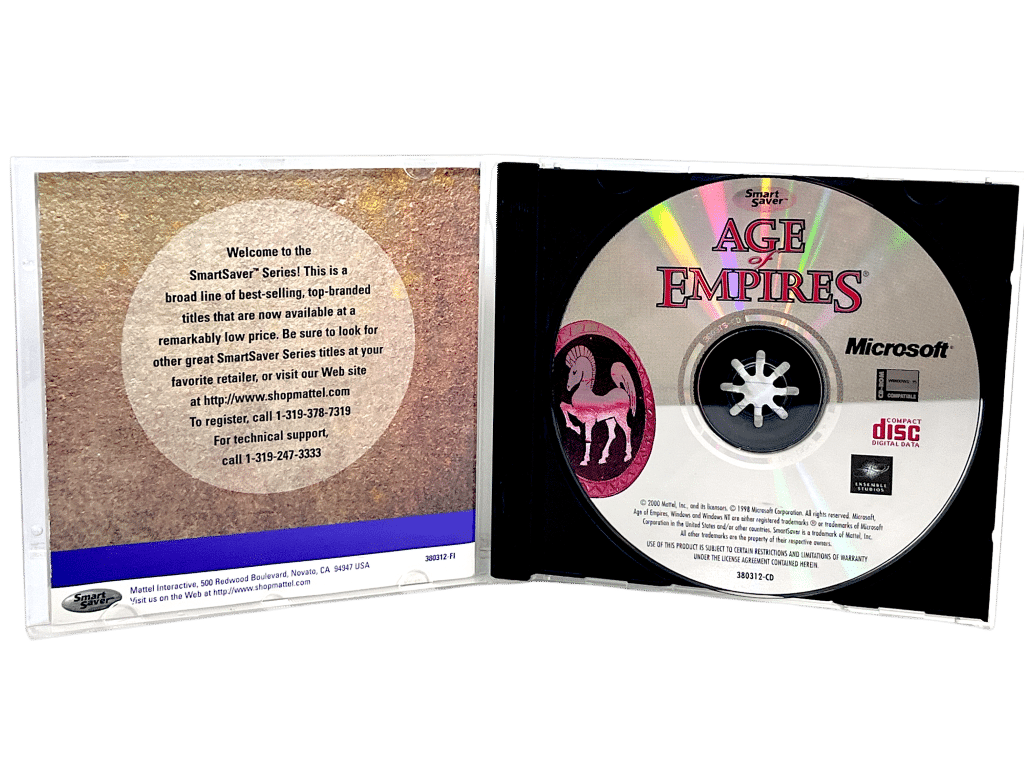 Age of Empires (PC – Windows 95). This preowned game disc is in good condition with mild markings and very fine scratches only and includes pictured case + contents. Case has some minor wear and tear. Please NOTE that as a preowned PC game, this game may require a new Steam code or key code purchased online in order to unlock the game. Refer photographs.
