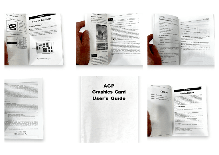 This original AGP graphics card user’s guide provides essential setup and installation instructions for legacy desktop PCs using the Accelerated Graphics Port (AGP) standard. It covers hardware installation, driver setup, basic configuration, and troubleshooting to help ensure proper performance and compatibility. Ideal for retro PC builders, collectors, or anyone restoring older systems, this guide is a useful reference for understanding AGP graphics cards and their correct operation.