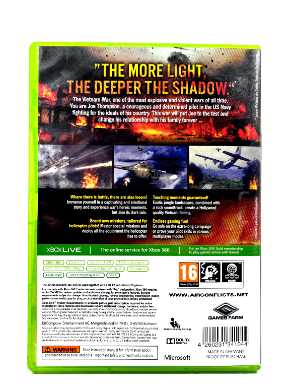 RARE Vietnam War Fighter Pilot Game in Excellent Condition & 100% Complete with Contents: AIR CONFLICTS VIETNAM for XBox 360. This preowned game is in superb condition and comes complete with case + cover + manual / booklet + game disc.