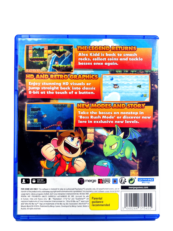 ALEX KIDD IN MIRACLE WORLD DX for SONY PlayStation 5 / PS5. As New & complete with case + reversible cover + manual / booklet + game disc.