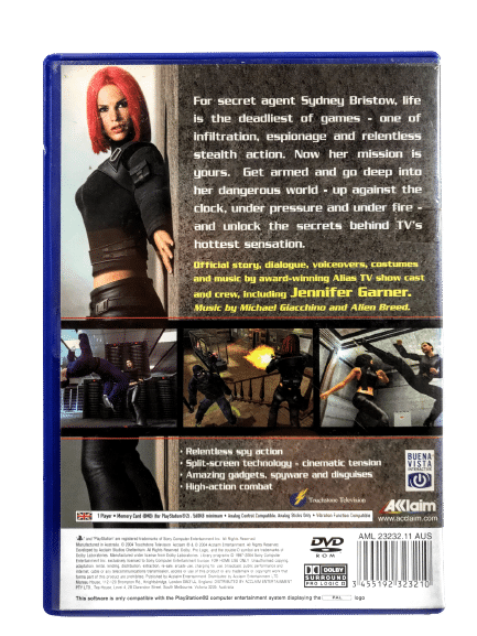 Good condition & 100% complete with contents: ALIAS the game for SONY PlayStation 2 / PS2. This preowned game comes complete with case + cover + manual / booklet + game disc. Some light superficial markings / cosmetic scratches, but these are very minor imperfections which do not affect game play in any way.