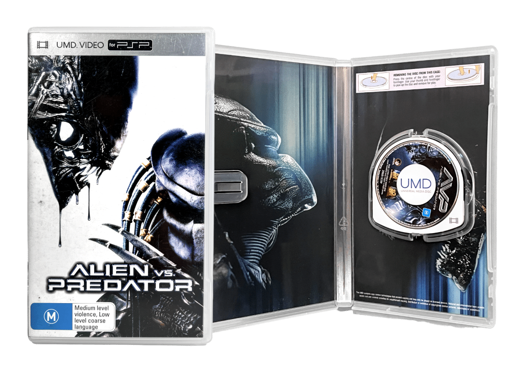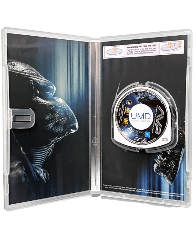 Excellent condition & 100% complete with contents: SONY PSP Movie – ALIENS vs PREDATOR. Preowned, complete with official Case + Cover + Movie Disc inside its miniature UMD Case.