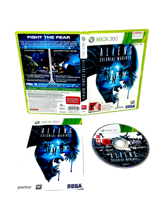 Aliens Colonial Marines (Xbox 360). This preowned game is in good condition and includes pictured contents. Very mild disc surface imperfections such as light scratches but these are purely cosmetic and do not hinder performance or gameplay in the slightest. Refer photographs for included contents.