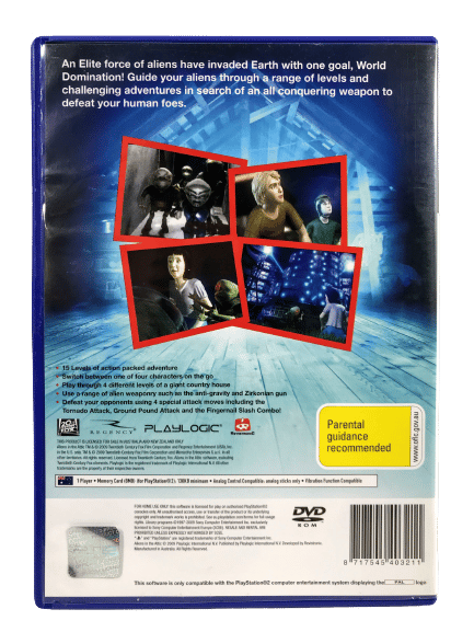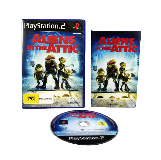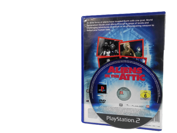 Excellent Condition & 100% complete with contents: ALIENS IN THE ATTIC the official game for SONY PlayStation 2 / PS2. This preowned game comes complete with case, cover, manual / booklet, and game disc. The only imperfection I could find was on the edge of the booklet where there is paper creasing and a small paper split along the edge of the booklet cover. But this is a minor imperfection, and the booklet is complete, intact, and the game disc is in superb condition.