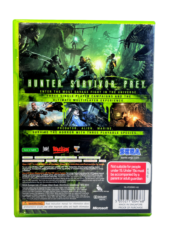 Excellent condition & 100% complete with contents: ALIENS vs PREDATOR for Xbox 360. This preowned game comes complete with case + cover + manual / booklet + game disc.