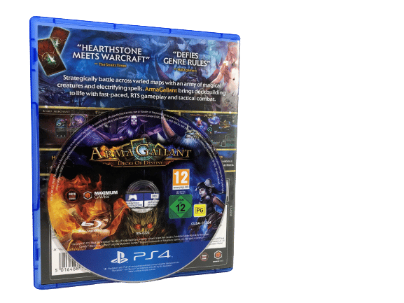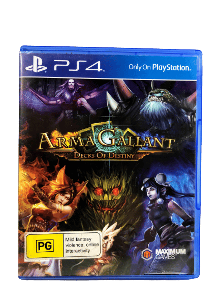 RARE PS4 Game in excellent condition & 100% complete with contents: ARMAGALLANT DECKS OF DESTINY / Arma Gallant Decks of Destiny for SONY PlayStation 4 / PS4. This preowned game comes complete with case, cover, and game disc (no booklet was printed for this game, but gameplay is self-explanatory, and instructions are readily available online).