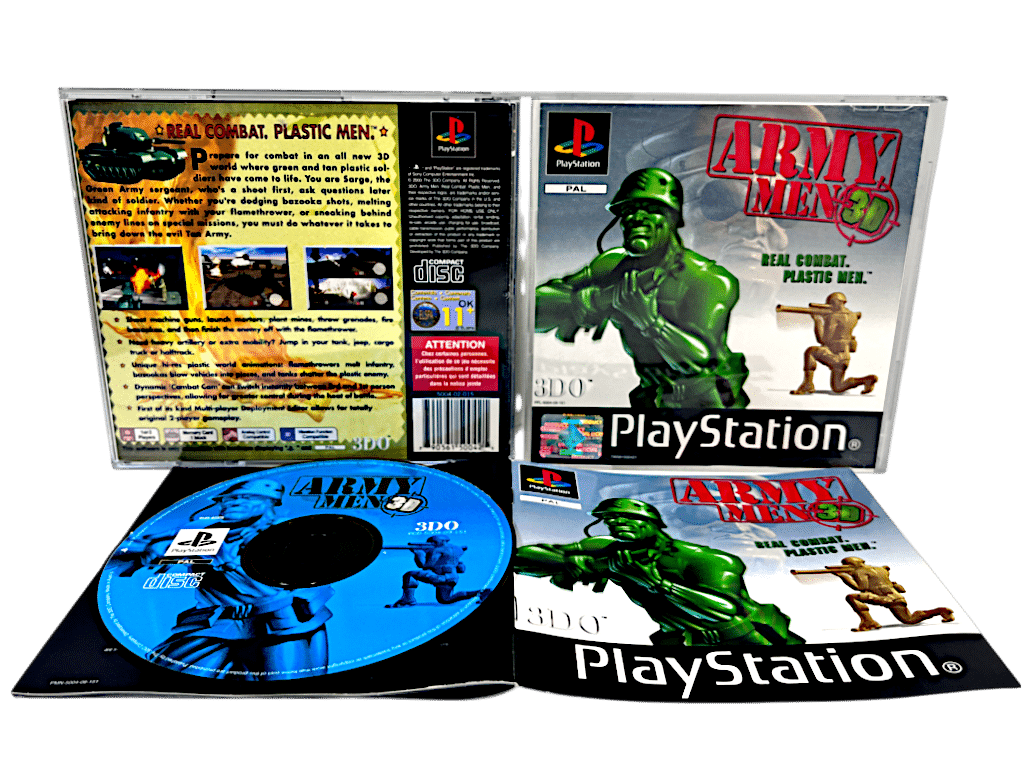 Excellent condition & 100% complete with contents:ARMY MEN REAL COMBAT PLASTIC MEN for SONY PlayStation / PS1. This preowned game is in superb condition and comes complete with case + covers (both front and back cover slips included) + manual / booklet + game disc.
