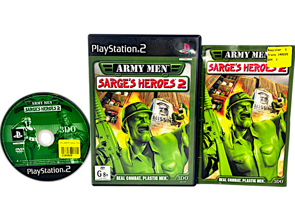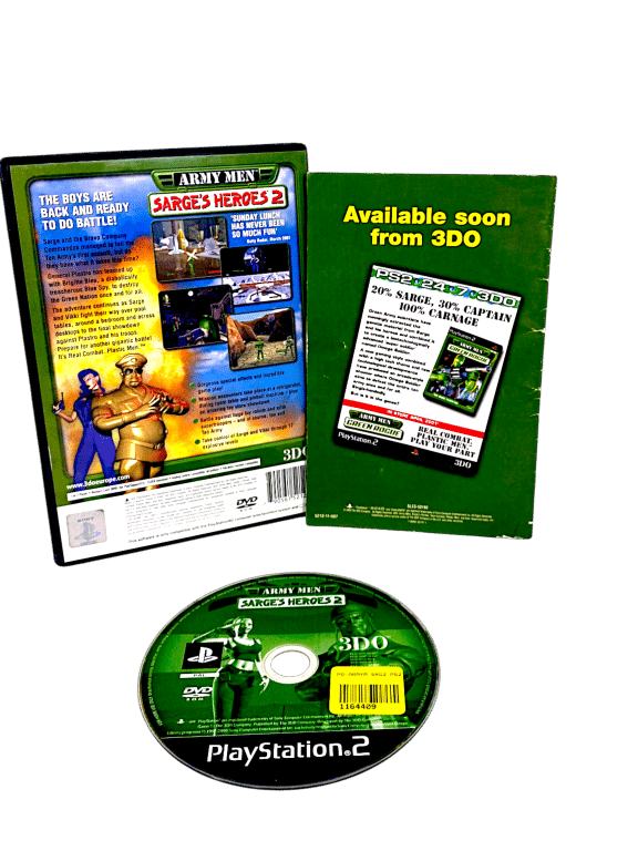 Excellent condition & 100% complete with contents: ARMY MEN: Sarge’s Heroes 2 for SONY PlayStation 2 / PS2. This preowned SONY PS2 game is in superb condition and comes complete with case + cover + manual / booklet + game disc.