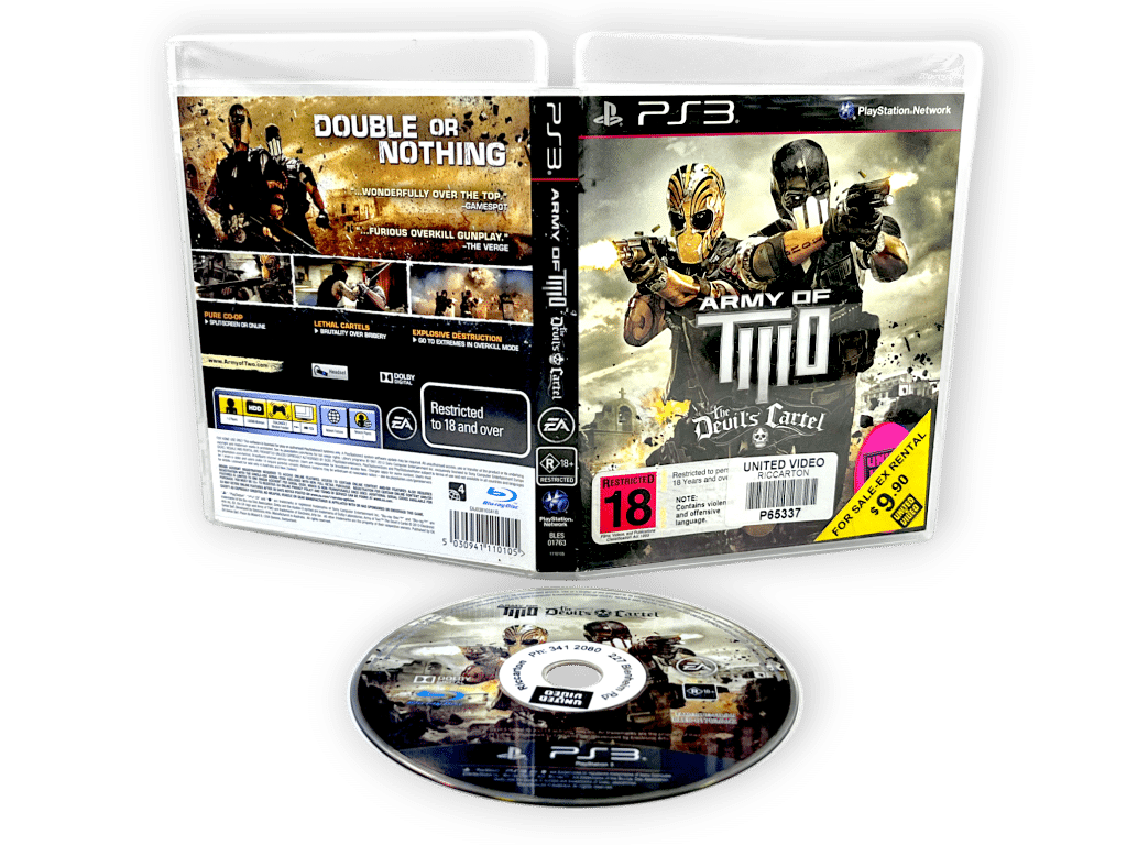 ARMY OF TWO THE DEVILS CARTEL / Army of 2 The Devil’s Cartel for SONY PlayStation 3 / PS3. This preowned game is in good condition and includes pictured ex-rental case + cover + game disc.