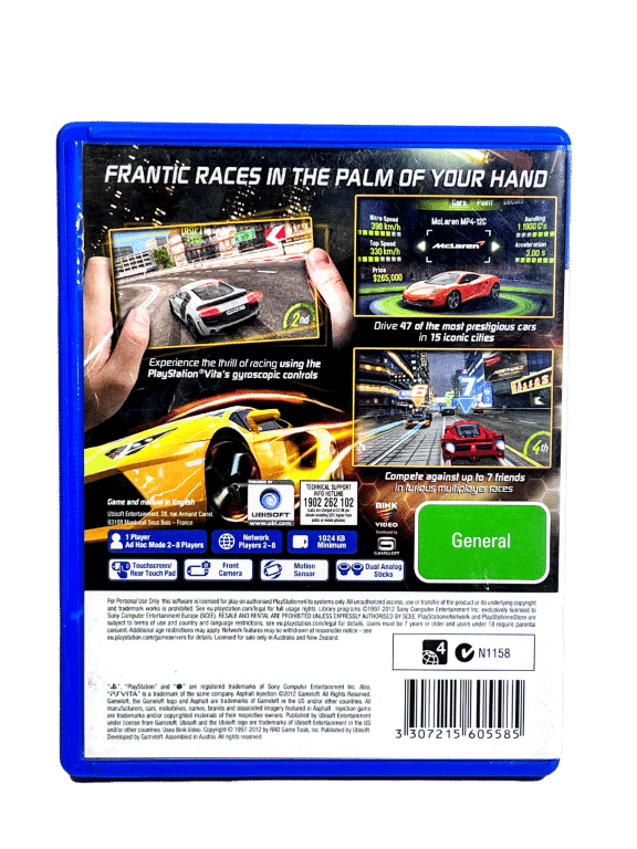 Excellent Condition & 100% Complete with Manual: Asphalt Injection for SONY PlayStation Vita / PS Vita. This preowned game is in superb condition, and comes complete with case, cover, manual / booklet, and game cartridge.