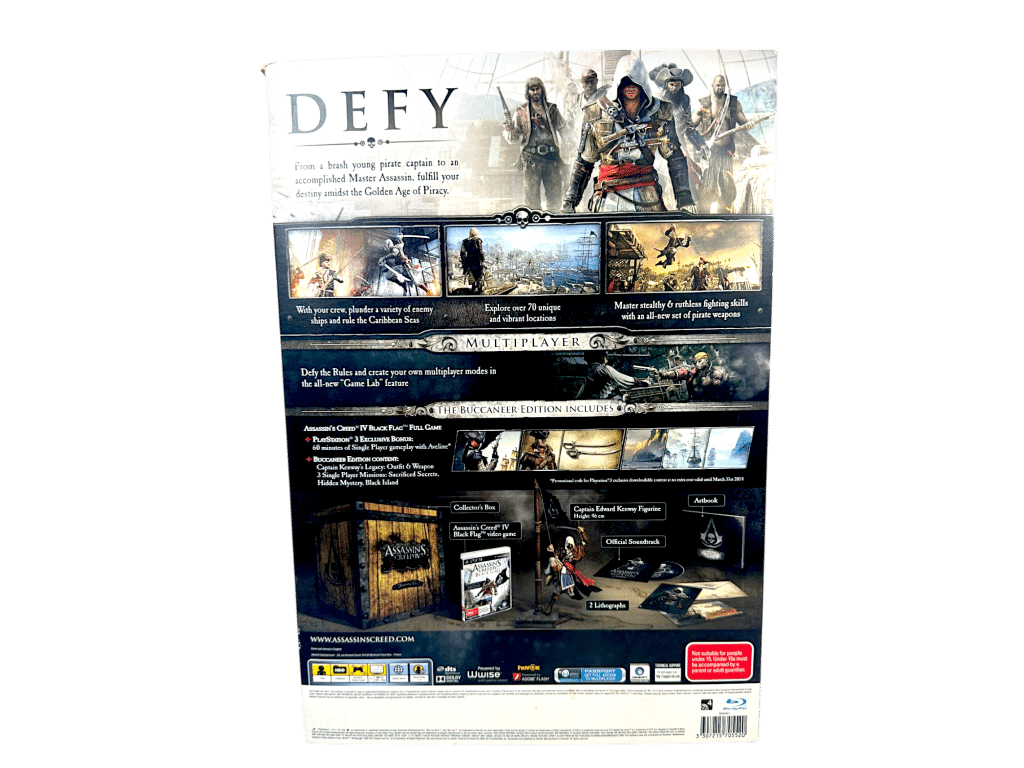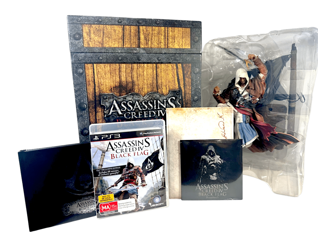 DESCRIPTION: Premium Assassin’s Creed IV: Black Flag Collector’s Edition featuring Edward Kenway figurine, soundtrack, and collector packaging. A fan-favourite pirate entry blending naval combat, open-world exploration, and classic stealth gameplay. Highly sought after for its strong display value and iconic Assassin branding.