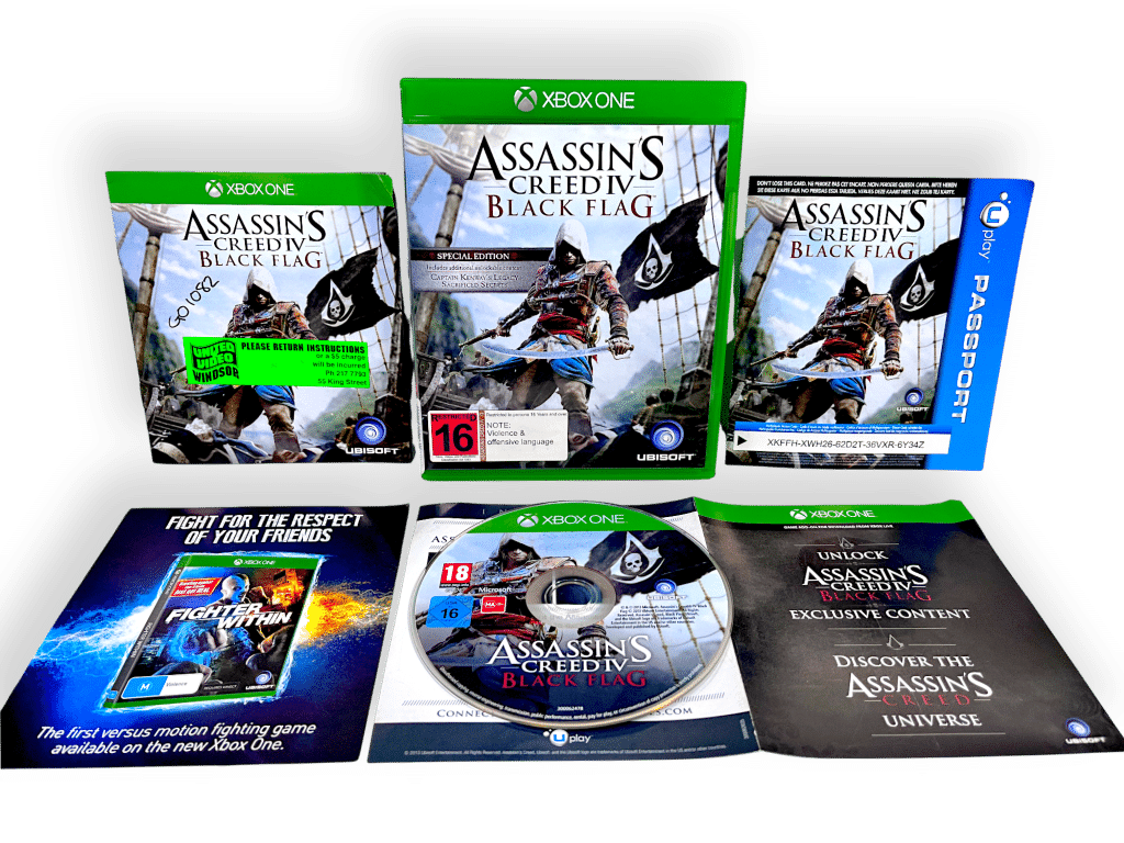 ASSASSINS CREED BLACK FLAG / Assassin’s Creed 4 Black Flag for XBox One. This preowned game is in excellent condition and comes complete with pictured case, cover, manual / booklet, promo cards and leaflets, and game disc. Ex-rental in superb condition. Refer photographs.