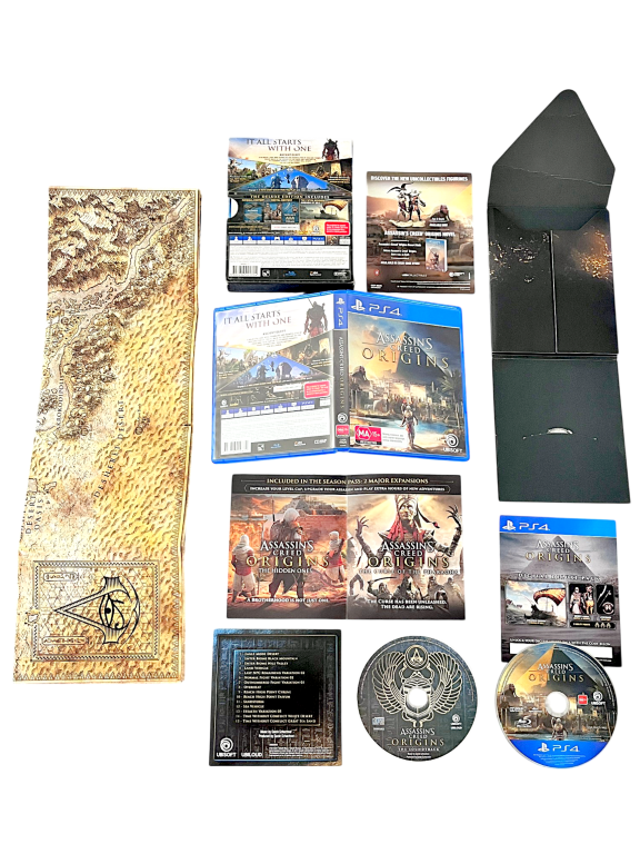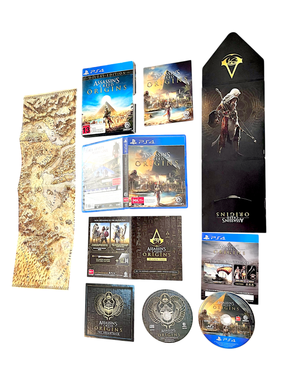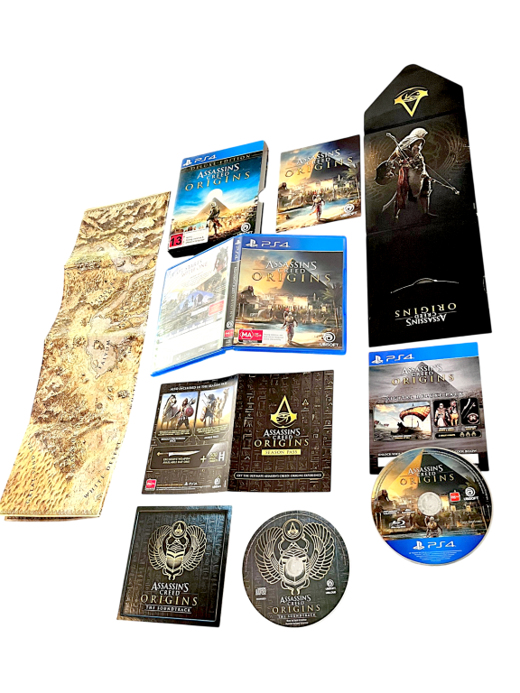 Assassin’s Creed Origins Deluxe Edition (PS4) *BOXED*. This genuine limited edition SONY PlayStation 4 PS4 Boxed Collector’s release is in excellent condition. A very tidy and complete collector’s item. Refer photographs. Note than any one time paper vouchers will have expired, but these were promotinal downloads only and are not required for gameplay or completion. The full Assassin’s Creed Origins game is contained on the game disc. Add this to your collection today and display it proudly.