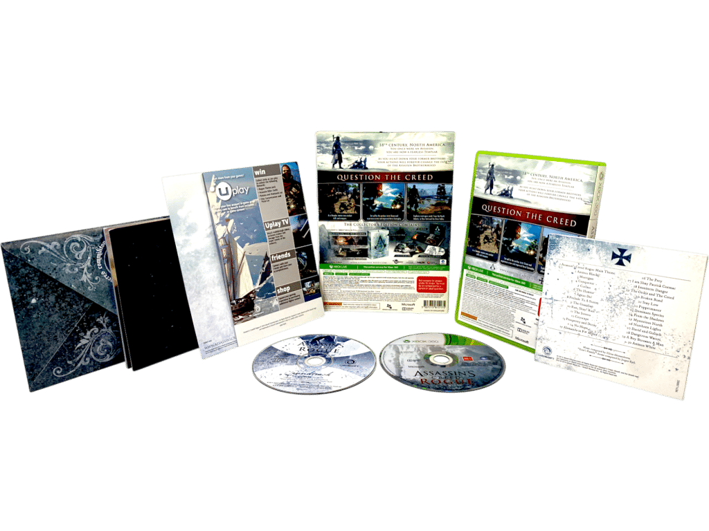 Assassin’s Creed Rogue (Xbox 360) BIG BOX COLLECTOR’S EDITION. This preowned genuine Limited Release Boxed Collector’s Edition is in Excellent Condition and includes pictured game + contents. A tidy collector’s bundle. Refer photographs.