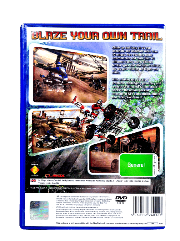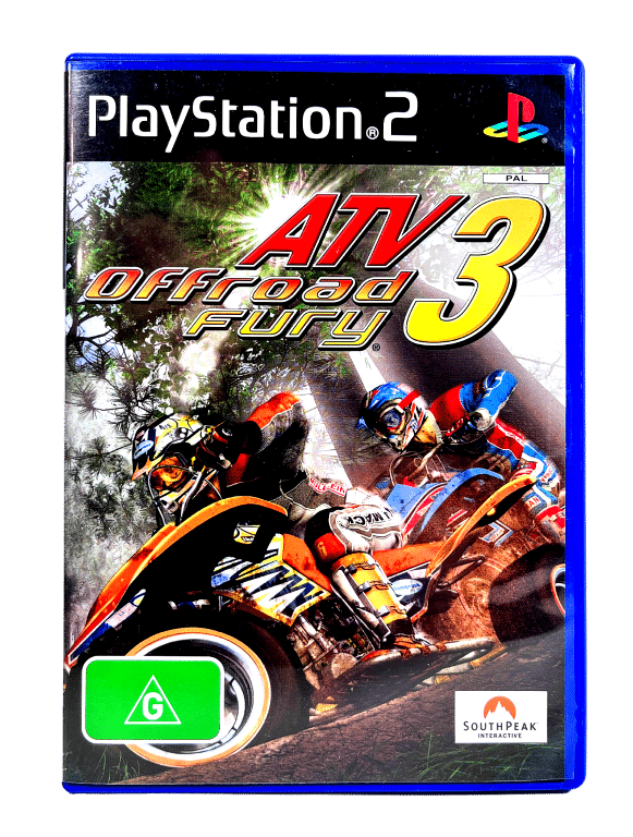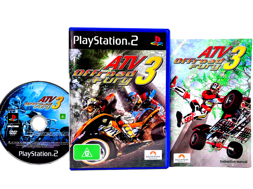 ATV Off Road Fury 3 for PlayStation 2 / PS2. This preowned game disc is in excellent condition and comes complete with case + cover + manual / booklet. Handwriting on spine of cover (refer image 4), but this is purely cosmetic.Â