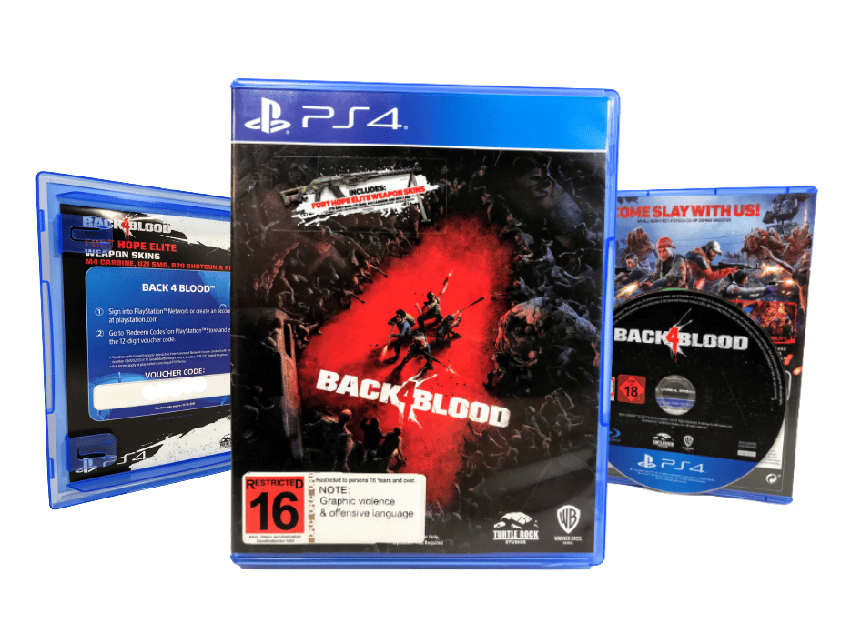Back 4 Blood / Back For Blood for SONY PlayStation 4 / PS4. This preowned game is in excellent condition and comes complete with case + cover + carded insert + game disc. Please note that the bonus voucher card will have expired and should not be considered included. The game is Back 4 Blood and the full Back 4 Blood game is included on the game disc.