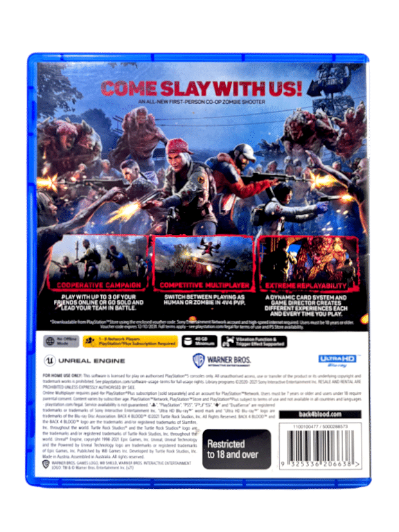 Back 4 Blood / Back For Blood for SONY PlayStation 5 / PS5. This preowned game is in excellent condition and comes complete with case + cover + carded insert + game disc.