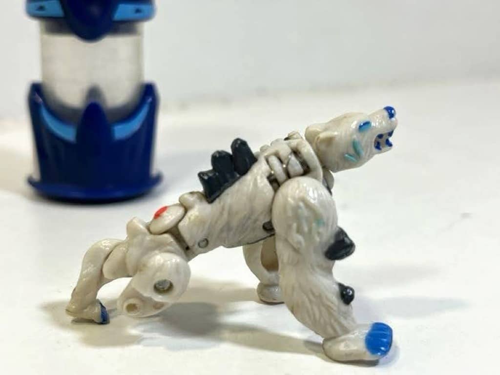 Authentic Bandai Monsuno Core LOCK Action Figure. This preowned genuine Bandai toy is in good condition as pictured, and comes complete with Barrel. Figure with just one of the small hind legs missing. Refer images.