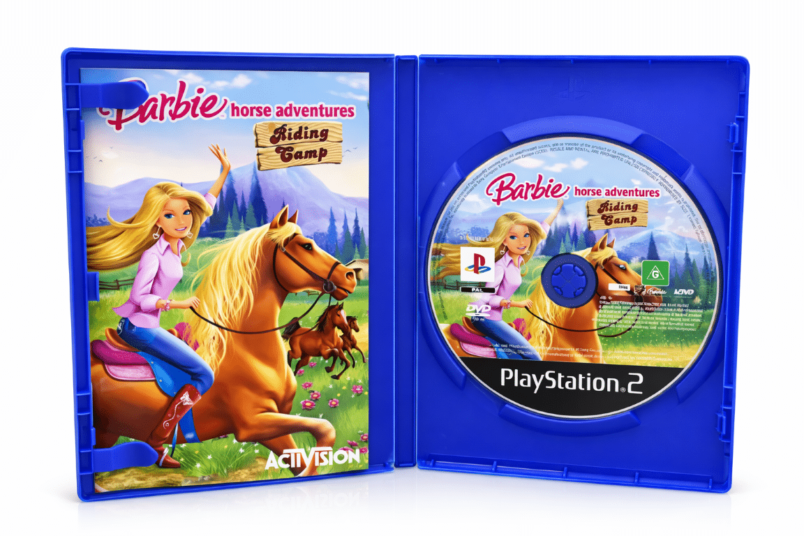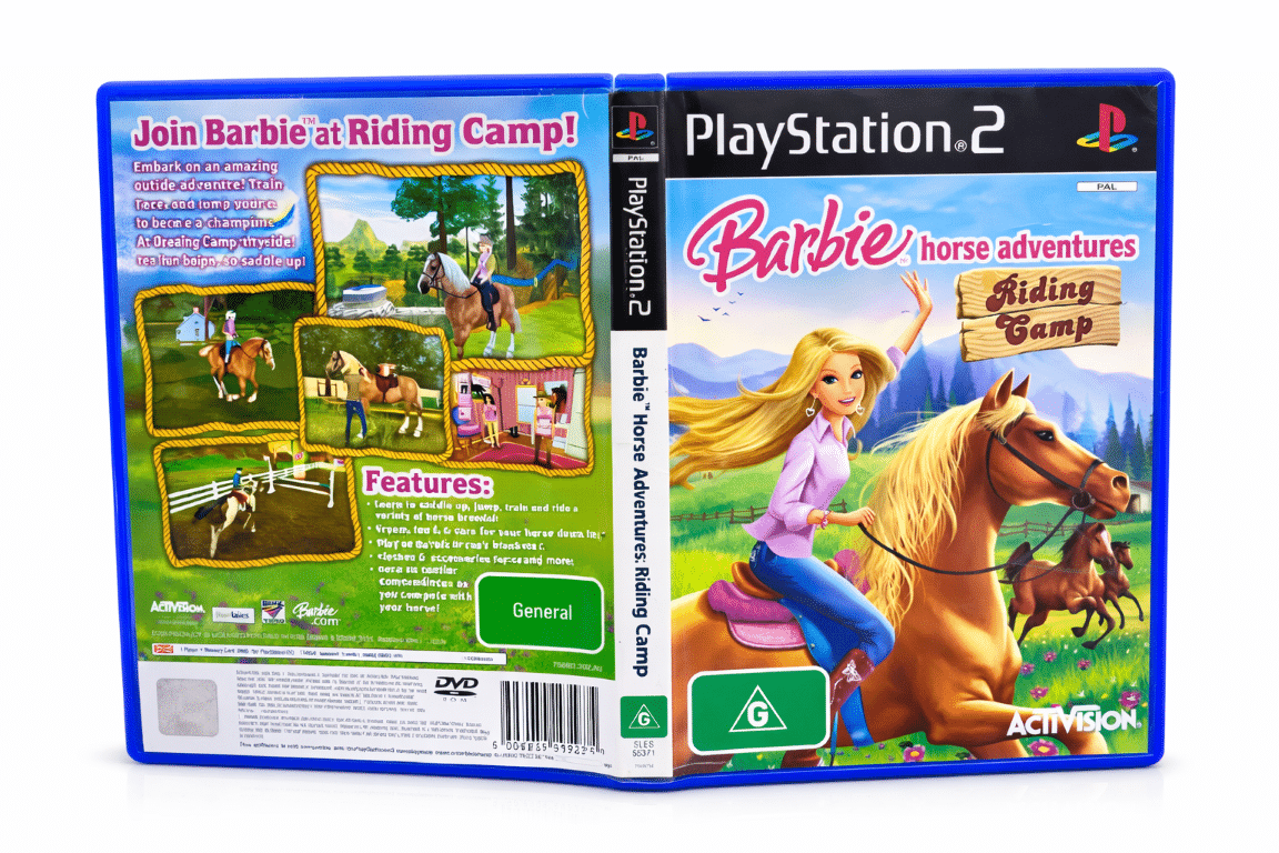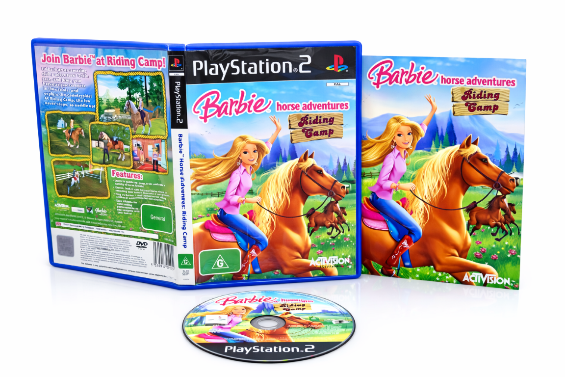 Barbie Horse Adventures: Riding Camp is a horse-riding simulation and adventure game for PlayStation 2. Players explore open environments, train and care for horses, complete quests, and participate in riding competitions. With a focus on creativity and exploration, players can customize their character and horse while enjoying mini-games, races, and challenges that test riding skills. The game emphasizes friendly, family-oriented gameplay and the bond between rider and horse.