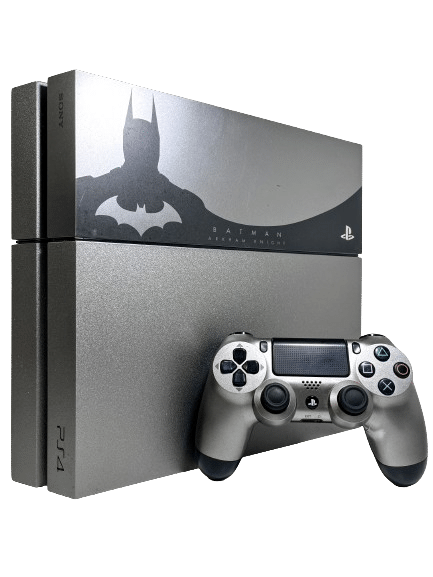 Limited Edition BATMAN ARKHAM KNIGHT PS4 Console in good condition and perfect working order, with matching Wireless Batman Arkham Knight Limited Edition Steel Grey PS4 Controller + HDMI Lead + Power Lead + Micro USB Charging Lead. This preowned Limited Edition Bundle includes both matching components: Arkham Knight Console + Controller. Mild markings and surface imperfections here and there, but these are purely cosmetic.