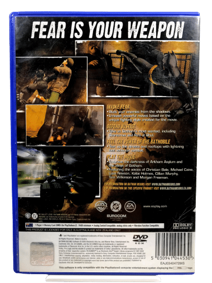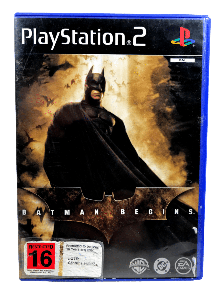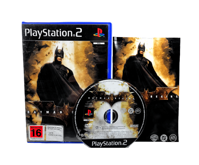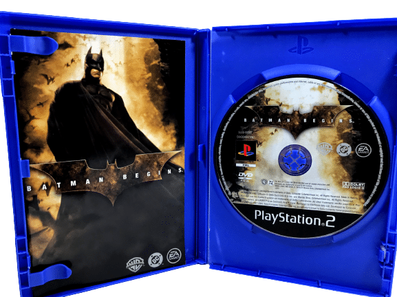 Excellent condition & 100% complete with contents: BATMAN BEGINS The Video Game for SONY PlayStation 2 / PS2. This preowned game comes complete with cover, manual / booklet, and game disc each in near-mint condition. Case has some price sticker residue where price stickers have previously been removed, but this is purely cosmetic, and each of the contents inside are fantastic. Overall, a tidy and complete collector’s item.