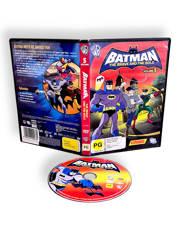 Batman: The Brave and the Bold – Volume 5 (DVD – Animated Series). This pre-owned DVD movie is in good condition and complete with original case, mild markings and faint scratches on disc. But these are purely cosmetic and do not hinder performance or play in the slightest.