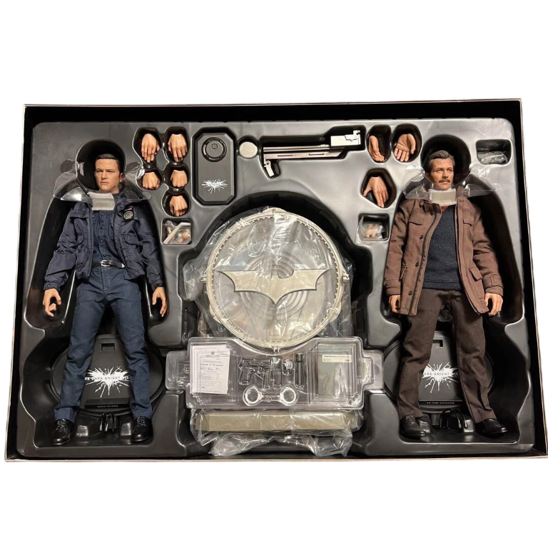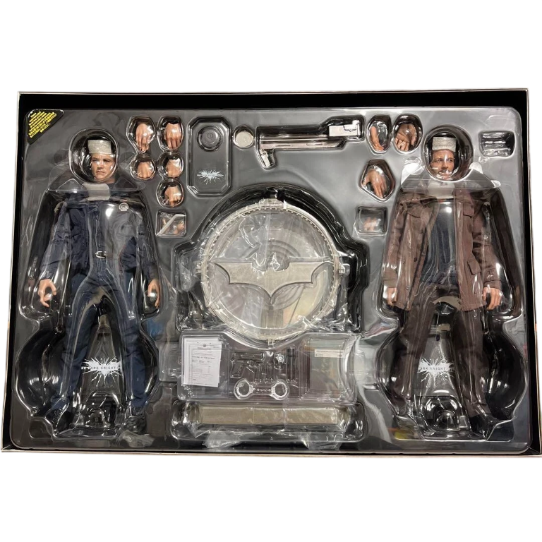 This impressive Hot Toys MMS275 collectible set brings together key characters from The Dark Knight Rises, featuring detailed 1/6 scale figures of John Blake and Jim Gordon alongside a highly detailed Bat-Signal accessory. Crafted with exceptional realism, both figures feature movie-accurate head sculpts, tailored outfits, and multiple articulation points for dynamic posing. The illuminated Bat-Signal adds a striking display centrepiece, capturing the gritty atmosphere of Gotham City. A must-have set for collectors and fans of Christopher Nolan’s iconic Batman trilogy.