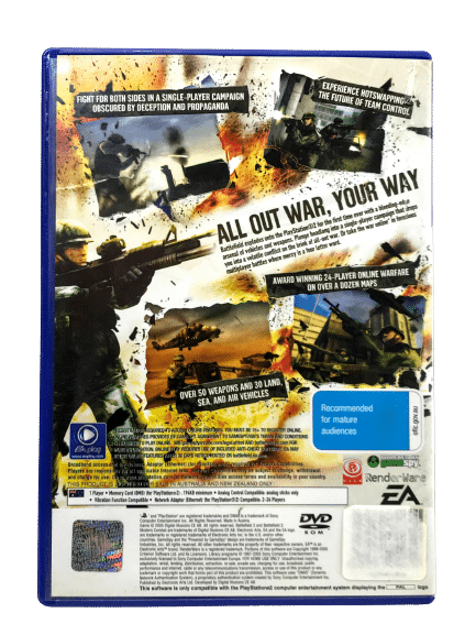 The first-ever Battlefield console installment will drop players into the heat of battle on the high tech frontlines, entering a new modern era of combat with more firepower and new expansive environments. Armed with the latest modern weaponry, players can take control of over 30 vehicles, including tanks, helicopters and fast attack vehicles, to engage in major conflicts with up to 24 players in some of the largest online battles on the PlayStation 2 console. (Online play requires the PlayStation 2 console, a broadband connection, memory card, and network adaptor for the PlayStation 2). Voiceover communication is also supported via USB headset. Players will choose to fight for one of three military superpowers: the United States, the Chinese, or the newly formed Middle East Coalition.