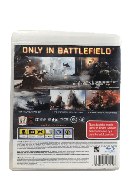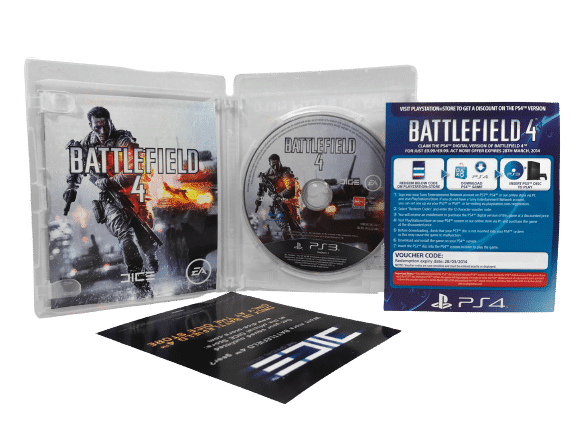 Excellent condition & 100% complete with contents: BATTLEFIELD 4 for SONY PlayStation 3 / PS3. This preowned game is in superb condition and comes complete with case + cover + manual / booklet + game disc. The case has visible laminate wear and some old price stickers on it. But this is purely cosmetic, and each of the internal contents are superb.