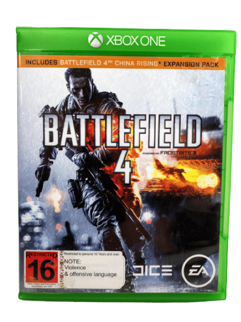 Excellent condition & 100% complete with contents: BATTLEFIELD 4 for XBox One. This preowned game comes complete with case, genuine limited release China Rising Edition cover, manual / booklet, and game disc. Any single use China Rising downloads will have expired, but these were promotional only and are not required for gameplay or completion. The full Battlefield 4 game is included on the game disc.