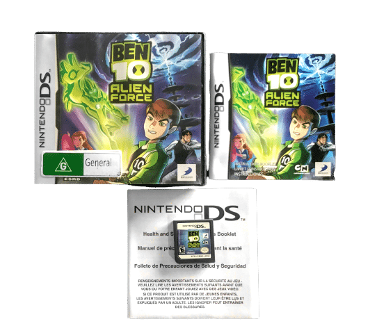 Good Condition & 100% complete with contents: BEN 10 ALIEN FORCE The Original Game for NINTENDO DS. This preowned game comes complete with case, cover, manual / booklet, and game cartridge. Case has some light laminate plastic wear, but this a very minor imperfection which does not hinder its performance in any way, and the contents inside are superb.Â
