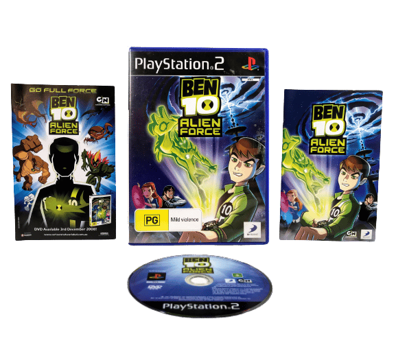 BEN 10 ALIEN FORCE for Sony PlayStation 2 / PS2. This preowned game disc is in pristine condition and includes case + cover. Case has some mild laminate wear, but each of the cover and game disc are fantastic. Please note that the MANUAL IS NOT INCLUDED in this listing, but the game is self-explanatory, and the instructions are readily available online.