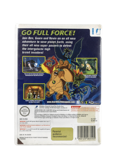 Excellent condition & 100% complete with contents: BEN 10 ALIEN FORCE NINTENDO Wii. This preowned game is in superb condition and comes complete with CLEAR case, cover, manual / booklet, Ben 10 Promo Card, Nintendo card, and game disc. Case is a CLEAR case, so differs slightly to pictured white case. Condition is fantastic.