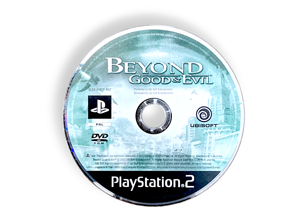 Beyond Good & Evil (PS2). This pre-owned Sony PlayStation 2 game Disc is in good condition with mild markings and faint scratches only. It comes inside an empty blank case. Please note that the original case is not included here.