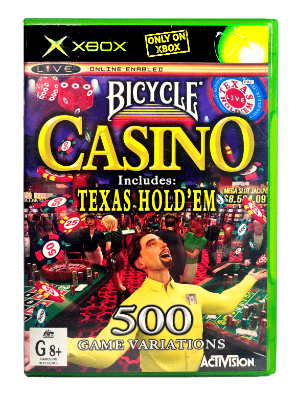 Rare Genuine PAL Edition (to play perfectly in NZ consoles) in excellent condition & 100% complete with contents: Bicycle Casino 2005 (Includes Texas Hold ‘Em) for Original Xbox. This preowned game comes is in superb condition and complete with case + cover + manual / booklet + game disc.