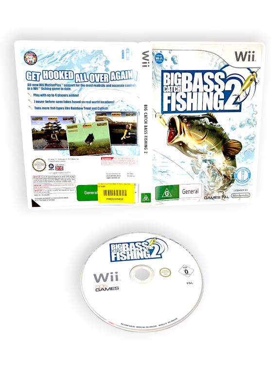 Big Catch Bass Fishing 2 (Wii). This preowned game is in good condition and includes pictured contents. Mild disc surface imperfections only which do not hinder performance or gameplay in the slightest. Refer photographs.