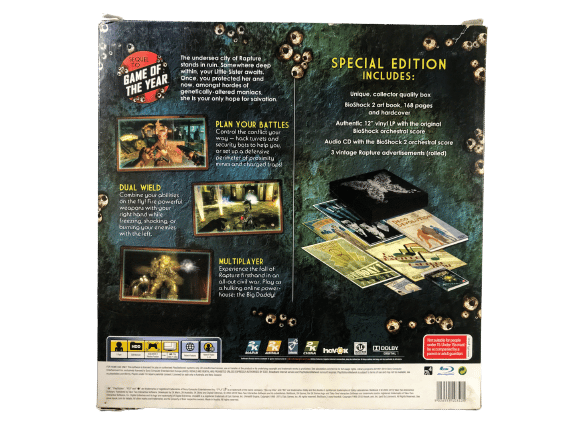 RARE FIND: Official Limited Collector’s Edition: BIOSHOCK 2 SPECIAL EDITION / Bioshock II Special Edition for SONY PlayStation 3 / PS3. This preowned OFFICIAL LIMITED EDITION is in mint condition – all inner contents pristine – game immaculate. This Box Set includes Inner Display Box, Game, and inner contents. A very tidy collector’s item. Refer photographs.