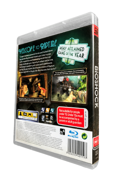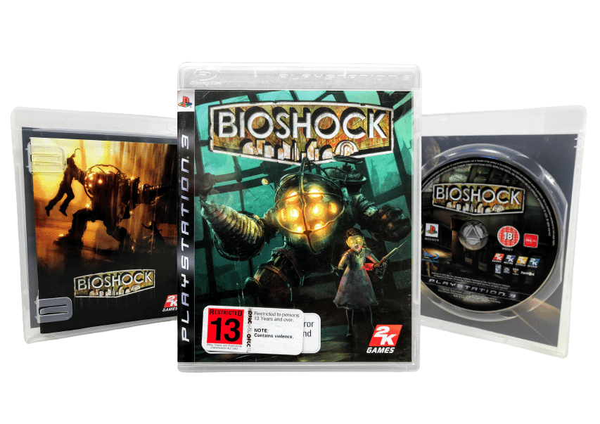 The Original Print in Excellent Condition & 100% complete with contents: BIOSHOCK The Original PlayStation 3 game. This preowned game comes complete with case, cover, manual / booklet, and game disc. Case has light laminate wear, but this is purely cosmetic, and each of the internal contents are fantastic.