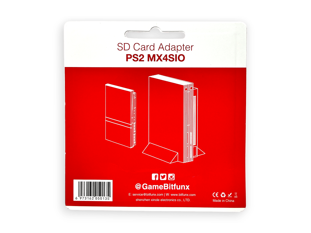 An SD card adapter that plugs into the PS2 memory card slot, allowing you to load games from an SD card using Open PS2 Loader. The MX4SIO provides faster loading times than USB while maintaining compatibility with most PS2 titles. Features plug-and-play functionality with no modifications required. Compatible with FAT32 formatted SD cards up to 128GB. Requires FreeMcBoot or other homebrew software to function.