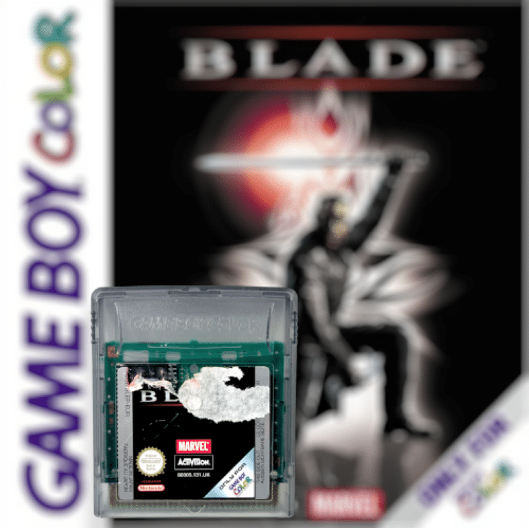 BLADE the Game for Nintendo Game Boy Colour / Gameboy Colour. This preowned GBC game cartridge is in good condition. Cartridge only. Some sticker wear as pictured, but this purely cosmetic and the game cartridge itself is great. Box NOT included.