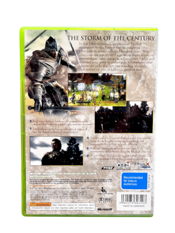 AS NEW: Blade Storm The Hundred Years War Xbox 360. Pre-owned but as new. A beautiful, collector’s item. Refer photographs.