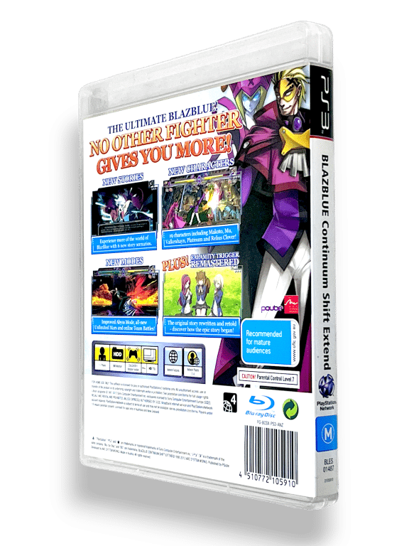 GENUINE NZ/AUS PRINT in Excellent condition & 100% complete with contents: BlazBlue Continuum Shift Extend for SONY PlayStation 3 / PS3. This preowned game is in superb condition and comes complete with case + cover + manual / booklet + game disc. Booklet has a light paper crease along one edge, but this is subtle and purely cosmetic, and all other contents are fantastic.