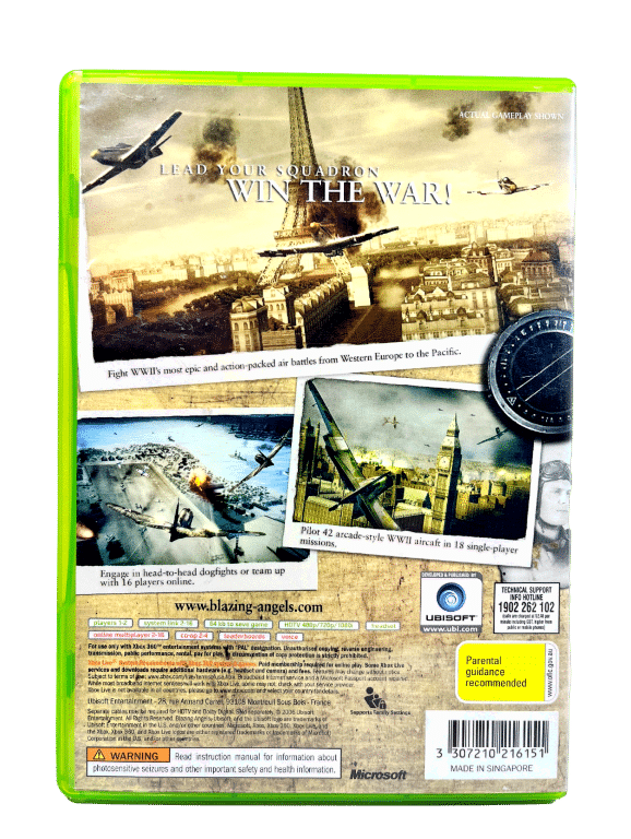 RARE World War 2 Fighter Plane Game in Good Condition & 100% Complete with Contents: Blazing Angels Squadrons of WWII (Blazing Angels Squadrons of WW2) for XBox 360. This preowned game comes complete with case, cover, manual / booklet, and game disc. Some very fine superficial markings / cosmetic scratches, but these are extremely minor imperfections which do not affect game play in any way.