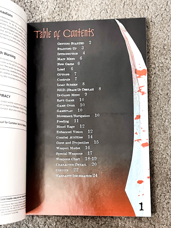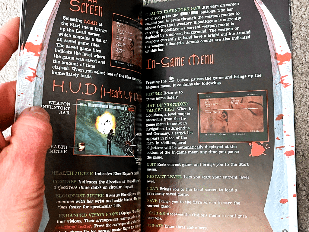 BloodRayne instruction manual covering missions, maps, enemy weaknesses, boss tactics, and advanced combat mechanics. Includes weapon data, vampire abilities, and secrets to help players navigate the game’s fast-paced action and occult storyline. A great collectible for fans of early-2000s horror-action titles.