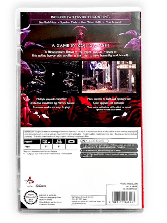 RARE Nintendo Switch game (and this the official NZ/AUS Edition): Bloodstained: Ritual of the Night for NINTENDO Switch. This preowned game is in mint condition and complete with case + cover + game cartridge.